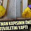İstanbul Esenyurt'ta bir kadın, apartmanlardan birinin kapısına tuvaletini yaptı.
