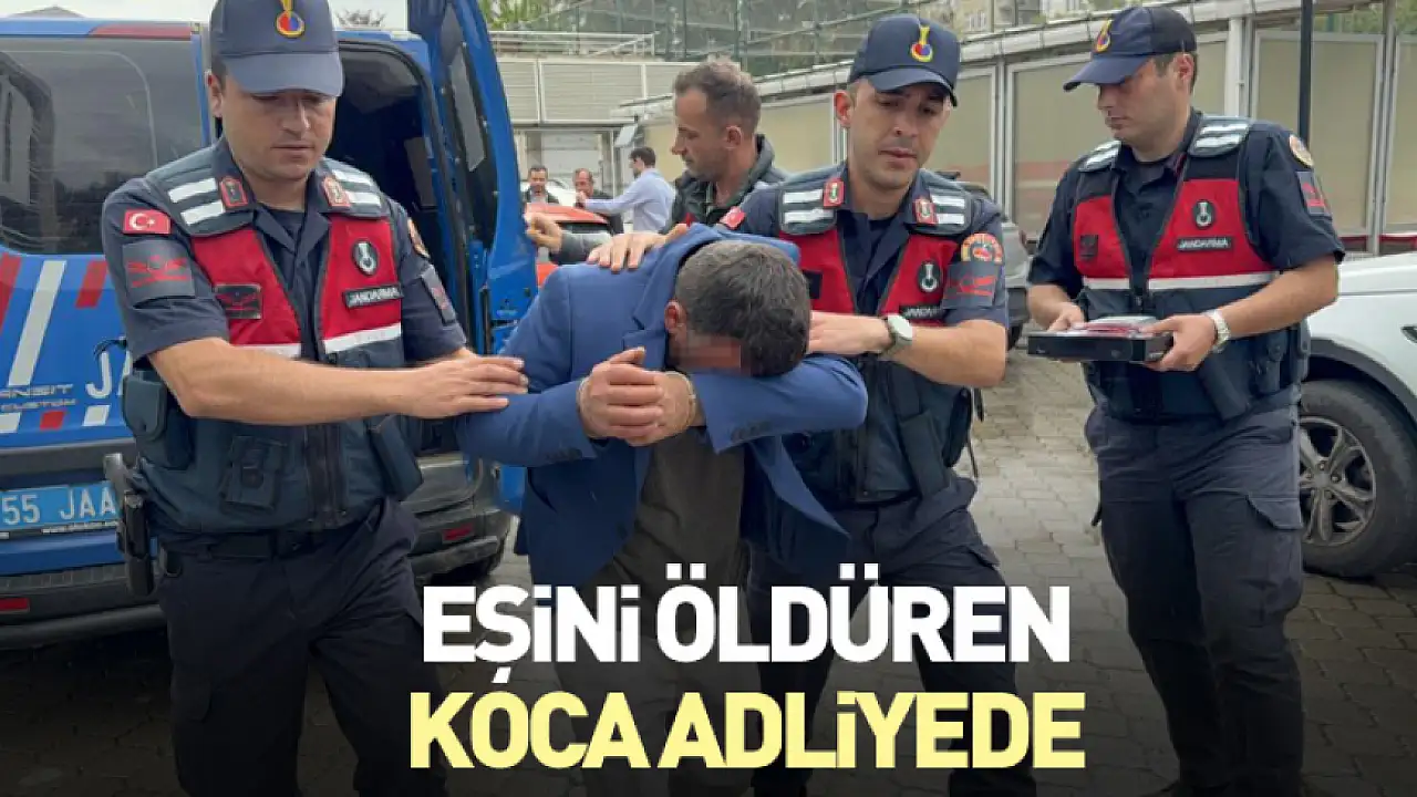 Samsun'da, eşini bardak ve yumruk darbesiyle öldürüp boğarak katleden Yücel Günegül (48), jandarmadaki işlemlerinin ardından adliyeye sevk edildi.