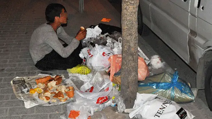 Cengiz Topel Caddesi'nde iki çocuk, çöp poşetlerinden çıkardıkları ekmek parçalarıyla karınlarını doyurmaya çalıştı. Kardeş olduklarını söyleyen çocuklar, buldukları gazete parçasını kaldırım taşları üzerine serip, çöp poşetlerinden çıkardıkları ekmek ve limon parçalarıyla açlıklarını gidermeye çalıştı.