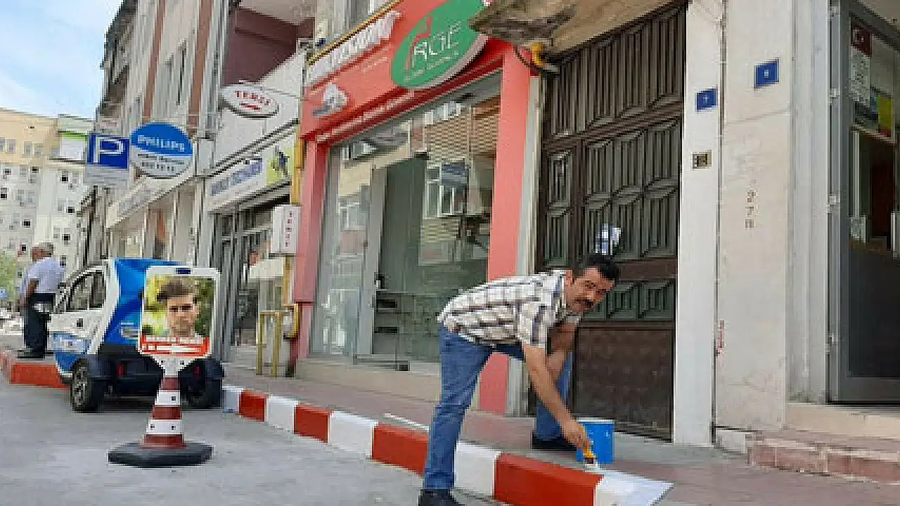 Samsun'da esnaf iş yerlerinin önündeki kaldırımları Samsunspor'a destek için kırmızı beyaza boyadı.