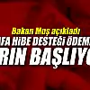 Ticaret Bakanı Mehmet Muş, sosyal medya hesabından yaptığı paylaşımda, “Hibe desteğine başvuran esnafımıza yarından itibaren ödemelere başlıyoruz. 3 bin TL ve 5 bin TL hibe desteği ödemesi, başvuru sıralaması dikkate alınmak suretiyle yarından itibaren esnafımızın Bakanlığımıza bildirdiği banka hesaplarına yatırılmaya başlanacaktır. Hayırlı olsun” ifadelerine yer verdi.