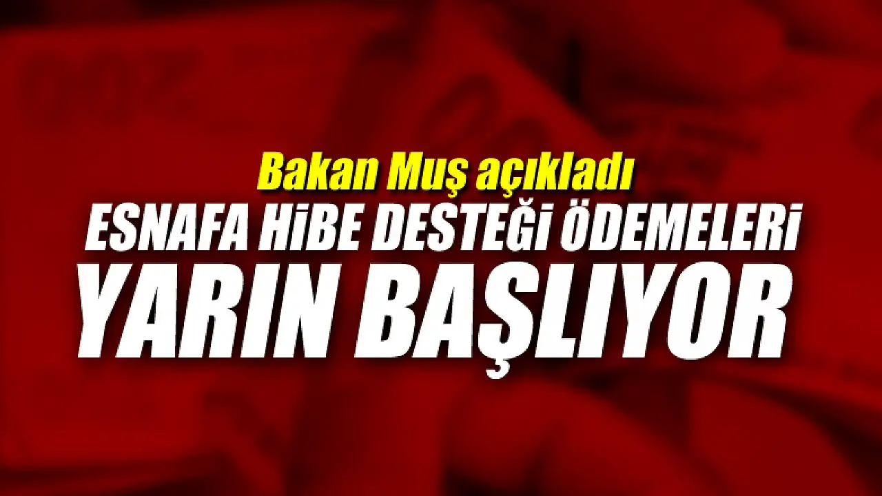 Ticaret Bakanı Mehmet Muş, esnafa 3 bin ve 5 bin liralık hibe desteği ödemelerinin yarın başlayacağını duyurdu.