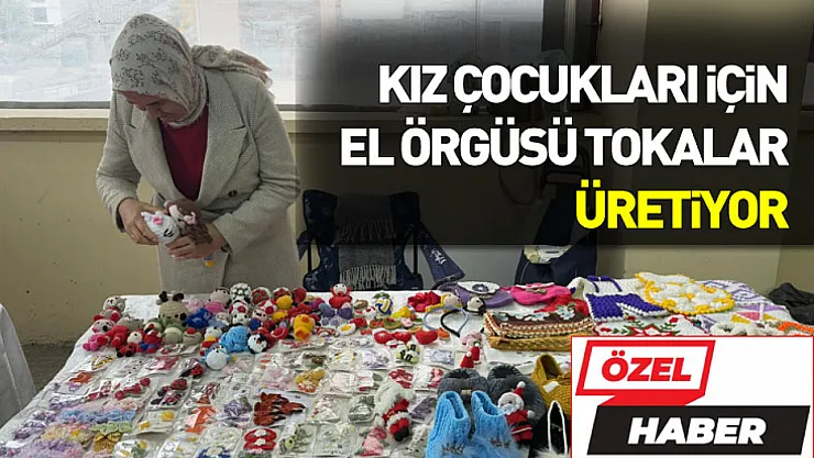 Ev hanımı Korkmaz, kız çocukları için el örgüsü tokalar üretiyor