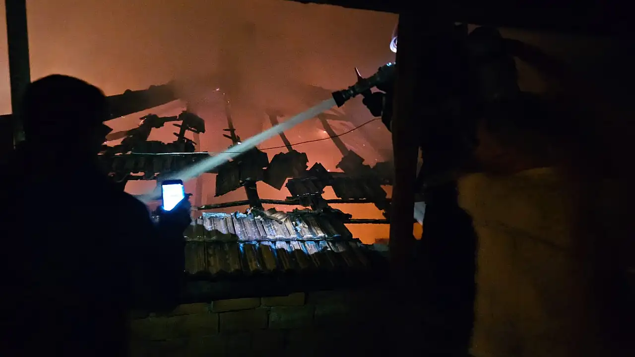 İtfaiye ekiplerinin soğutma çalışması yaptığı evde yangın sebebiyle hasar oluştu.