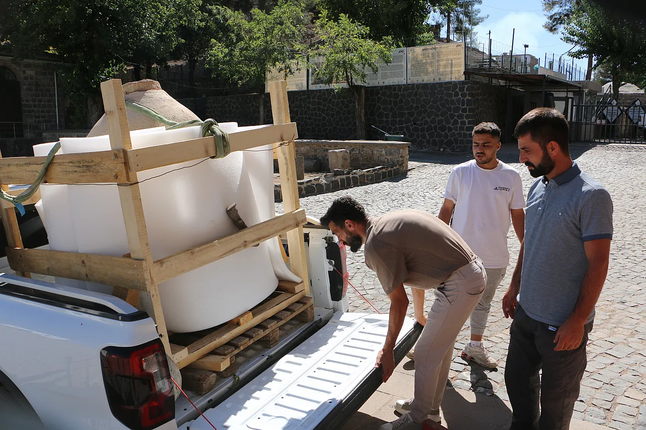 Diyarbakır'da vatandaşın evinde bulundurduğu tarih eser pitos müzeye taşındı