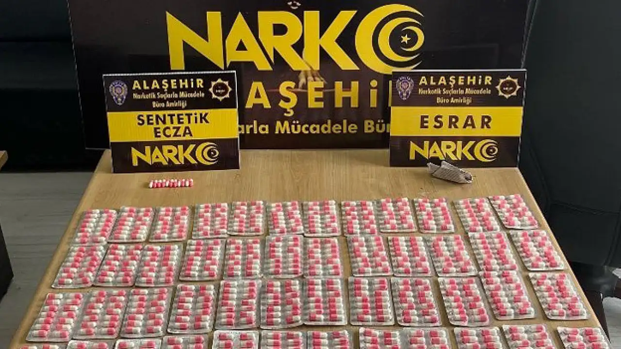 Alaşehir İlçe Emniyet Müdürlüğü Narkotik Suçlarla Mücadele Şube Müdürlüğü Büro Amirliği tarafından yapılan sokak çalışmaları kapsamında 1 şüpheli şahıs gözaltına alındı. M.T. (20) isimli şüphelinin Yeni Mahalle Mahallesi’nde bulunan ikametinde yapılan aramada, 71 şerit halinde bin 5 adet sentetik ecza hapı ve 2.42 gram esrar maddesi, ele geçirildi. Şüpheli M.T. (20) emniyetteki sorgusunun ardından sevk edildiği mahkeme tarafından tutuklanarak cezaevine gönderildi.