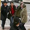 Polis merkezindeki ifadeleri tamamlanan şüpheliler, "görevli memura mukavemet" suçundan adliyeye sevk edildi. Ankara'da ikamet eden emekli baba Celal B. ve anne Melahat B., kızlarının gözaltına alındığını öğrenince Samsun'a geldi. Çocuklarını polisin ellerinde kelepçeli adliyeye getirildiğini gören baba, kızının polisin kollarında kelepçeyle slogan atmaya başlayınca, "Sus" diye üzerine atılarak tokatladı. Kızına, "Ben seni okumak için buralara gönderdim" diyen babayı polis sakinleştirdi. Kalp rahatsızlığı olan ve gözyaşı döken baba, adliyenin yan tarafındaki bekleme bölümüne alınarak sakinleştirilmeye çalışıldı. Anne Melahat B. de kızının arkasından gözyaşı dökerek, kızının sürekli çeşitli faaliyetlere katılmasından dert yandı.