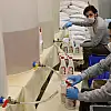 Günde 40 ton kapasiteyle çalışan 50 çeşit temizlik ürünü üreten Samsun Atakum Mesleki ve Teknik Anadolu Lisesinde öğrenciler '20 yaş altı sokağa çıkma yasağı'na takılınca üretime okulda bulunan hocalar ve usta öğreticiler devam ediyor.