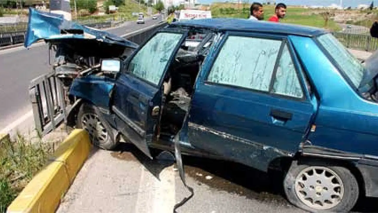 Adıyaman'da bariyerlere çarparak hurdaya dönen araçta sürücünün emniyet kemeri koparken, LPG tankerinin de ön koltuğa fırlayarak delinmesi üzerine facianın eşiğinden dönüldü.