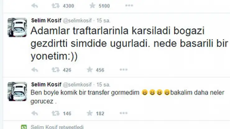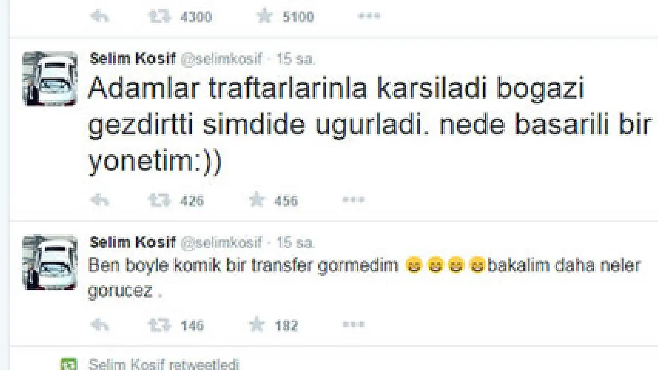 Kosif, kişisel Twitter hesabından Galatasaray'ın Kevin Grosskreutz transferini yorumladı. Kosif mesajında, 'Ben böyle komik bir transfer görmedim, bakalım daha neler goreceğiz. Adamlar taraftarlarınla karşıladı, boğazı gezdirdi şimdi de uğurladı. Ne de başarılı bir yönetim' ifadelerini kullandı.