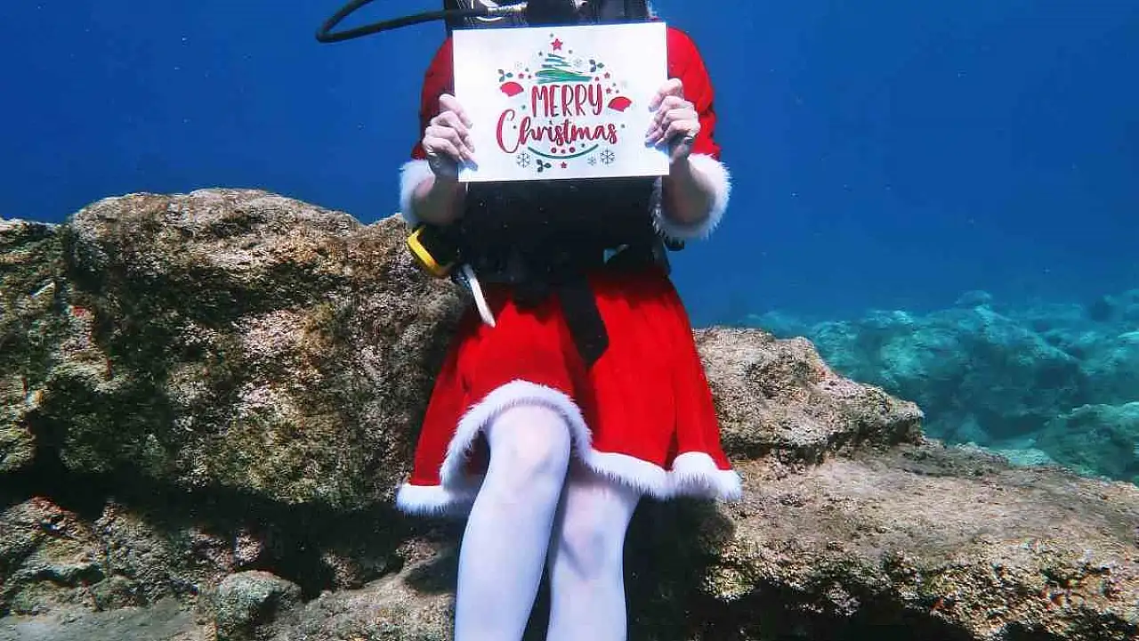 Muğla'nın Fethiye ilçesinde Slovenyalı kadın dalgıç Niky Grey, 'Mutlu Noeller' yazılı pankartıyla 5 metre derinliğe daldı.