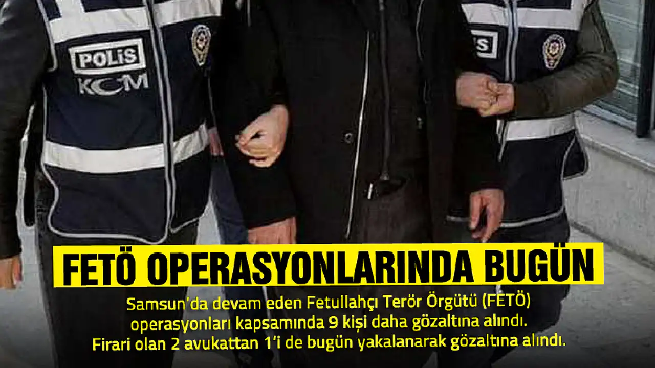 Samsun'da devam eden Fetullahçı Terör Örgütü (FETÖ) operasyonları kapsamında 9 kişi daha gözaltına alındı. Firari olan 2 avukattan 1'i de bugün yakalanarak gözaltına alındı.