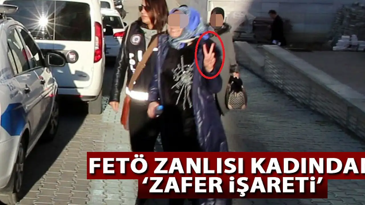 Fethullahçı Terör Örgütü/Paralel Devlet Yapılanması (FETÖ/PDY) soruşturması kapsamında 8 zanlı adliyeye sevk edildi. Adliyeye götürülmek üzere olan bir kadın zanlının kameralara 'zafer işareti' yapması dikkat çekti.