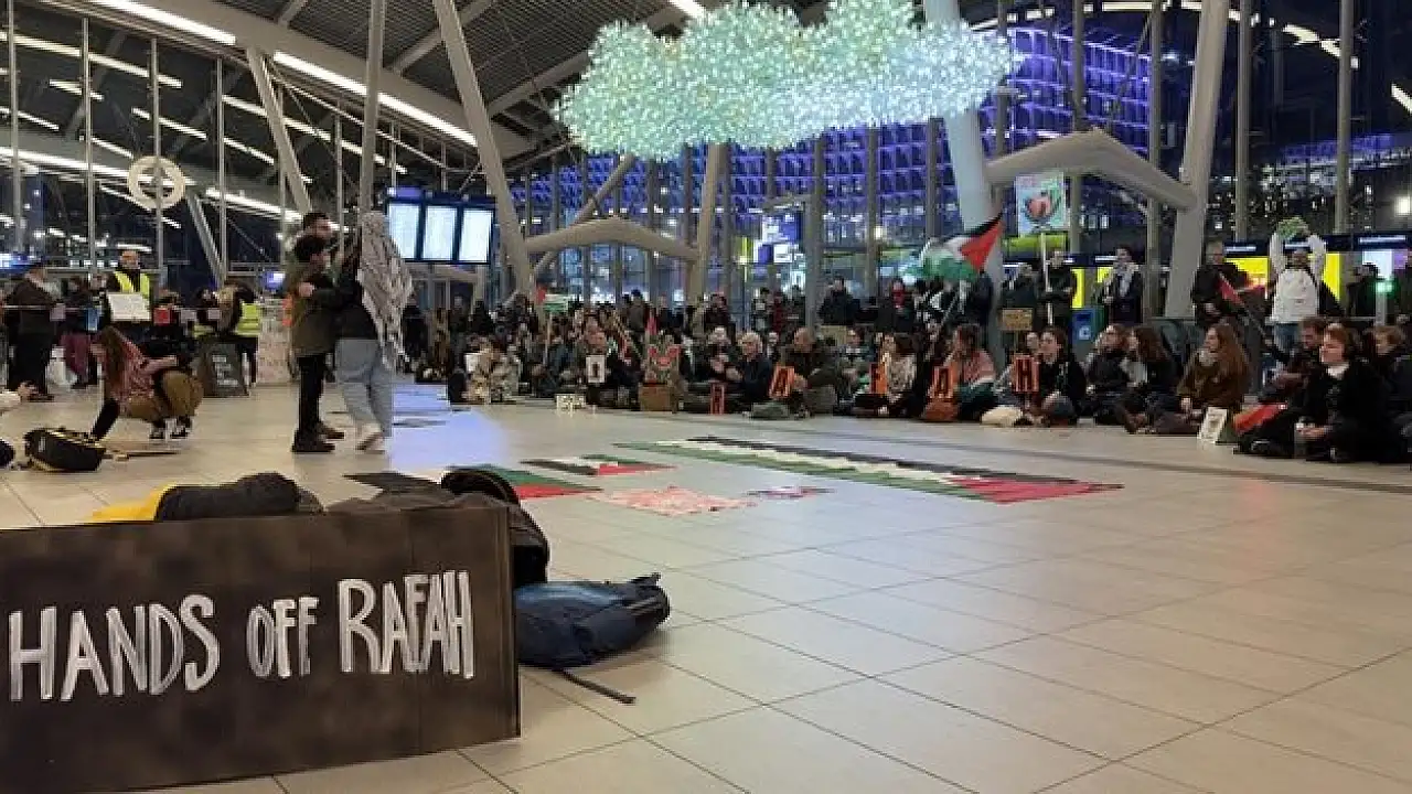 Hollanda'da 16 tren istasyonunda Filistin'e destek için oturma eylemi yapıldı