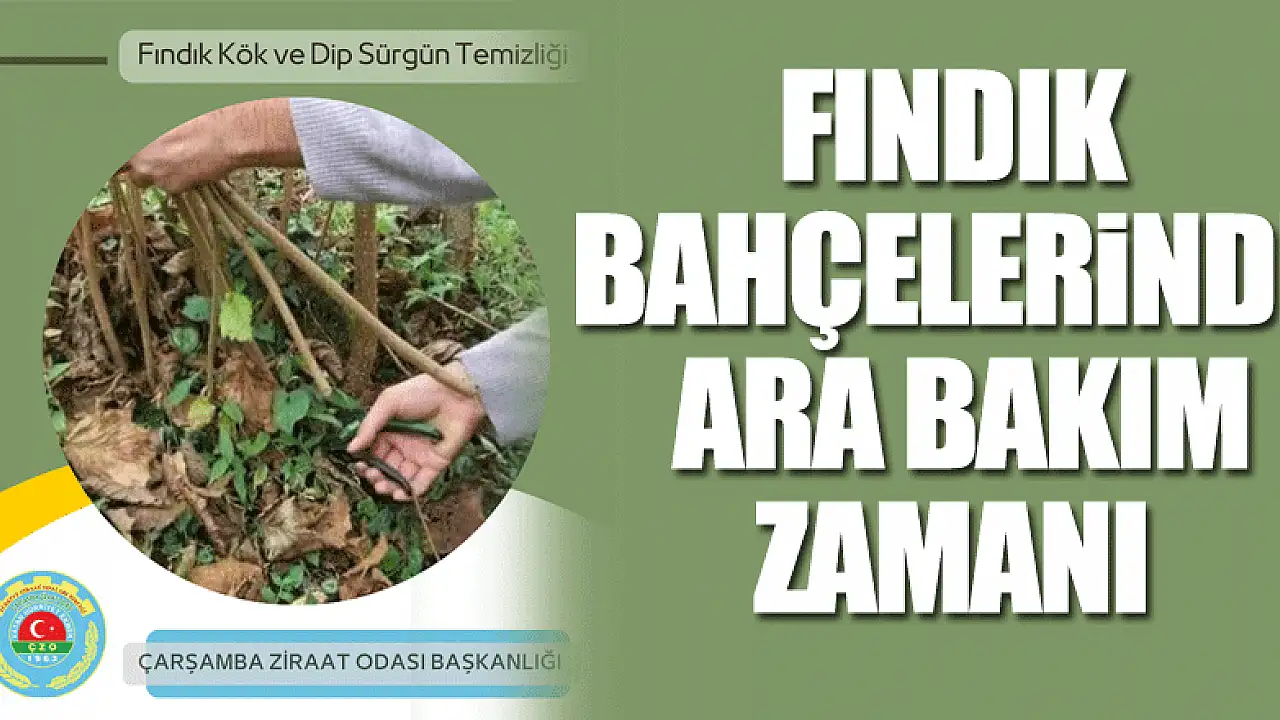 Türkiye’nin değerli ihracat ürünlerinden biri olan fındıkta ara bakım zamanı geldi. Çarşamba Ziraat Odası Başkanlığı tarafından fındıkta yüksek verim ve kaliteli ürün elde etmek için ara bakım zamanının geldiği hatılatırlatılırken dip sürgünlerinde temizlenmesi gerektiği belirtildi