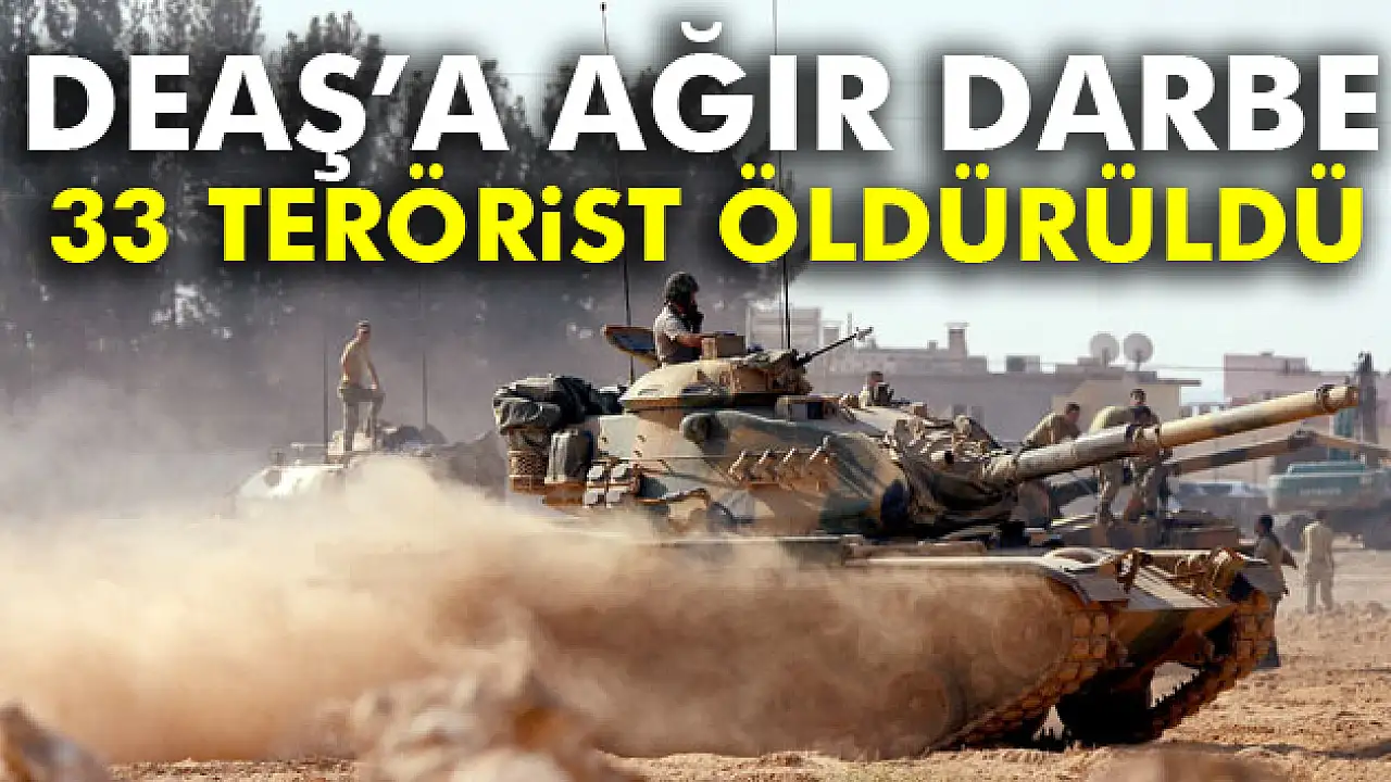 Türk Silahlı Kuvvetleri (TSK), Fırat Kalkanı Harekatı'nın 166. gününde icra edilen hava harekatı ve çatışmalarda 33 DEAŞ terör örgütü mensubunun etkisiz hale getirildiğini, 4 DEAŞ'lının yaralandığını açıkladı.