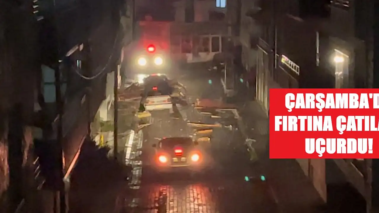 Çarşamba ilçesinde gece saatlerinde etkili olan şiddetli rüzgar sonrası oluşan fırtınada bazı binaların çatısı uçtu
