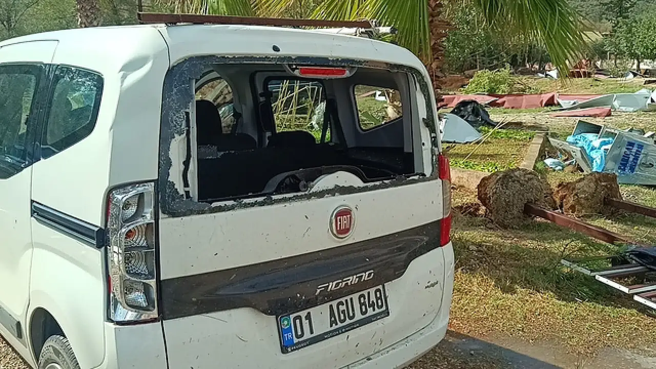 Adana'nın Kozan ilçesinde etkili olan sağanak ve fırtına sebebi ile uçan okul çatısı, park halindeki araçlara maddi zarar verdi.