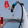 Samsun'da, 19 Mayıs Atatürk'ü Anma, Gençlik ve Spor Bayramı etkinlikleri çerçevesinde su sporcusu Ali Komşusu tarafından yapılan flyboard gösterisi nefes kesti.