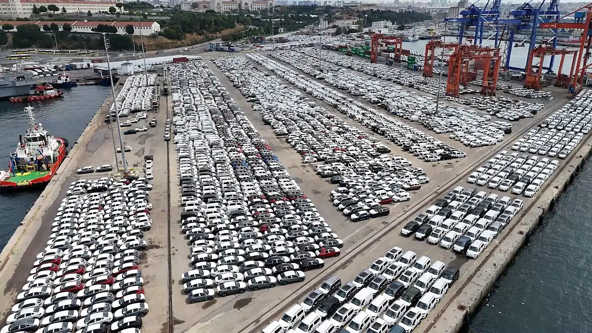 İstanbul'un en önemli limanlarından biri olan Haydarpaşa Limanı'na, gemilerle getirilen binlerce ithal sıfır araç havadan görüntülendi.