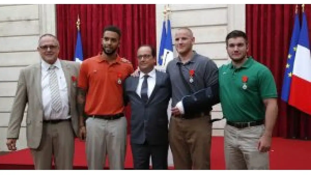 Amsterdam-Paris seferini yapan hızlı trendeki silahlı saldırganı etkisiz hale getiren 3 Amerikan vatandaşı, Fransa Cumhurbaşkanı François Hollande tarafından şeref nişanıyla ödüllendirildi.