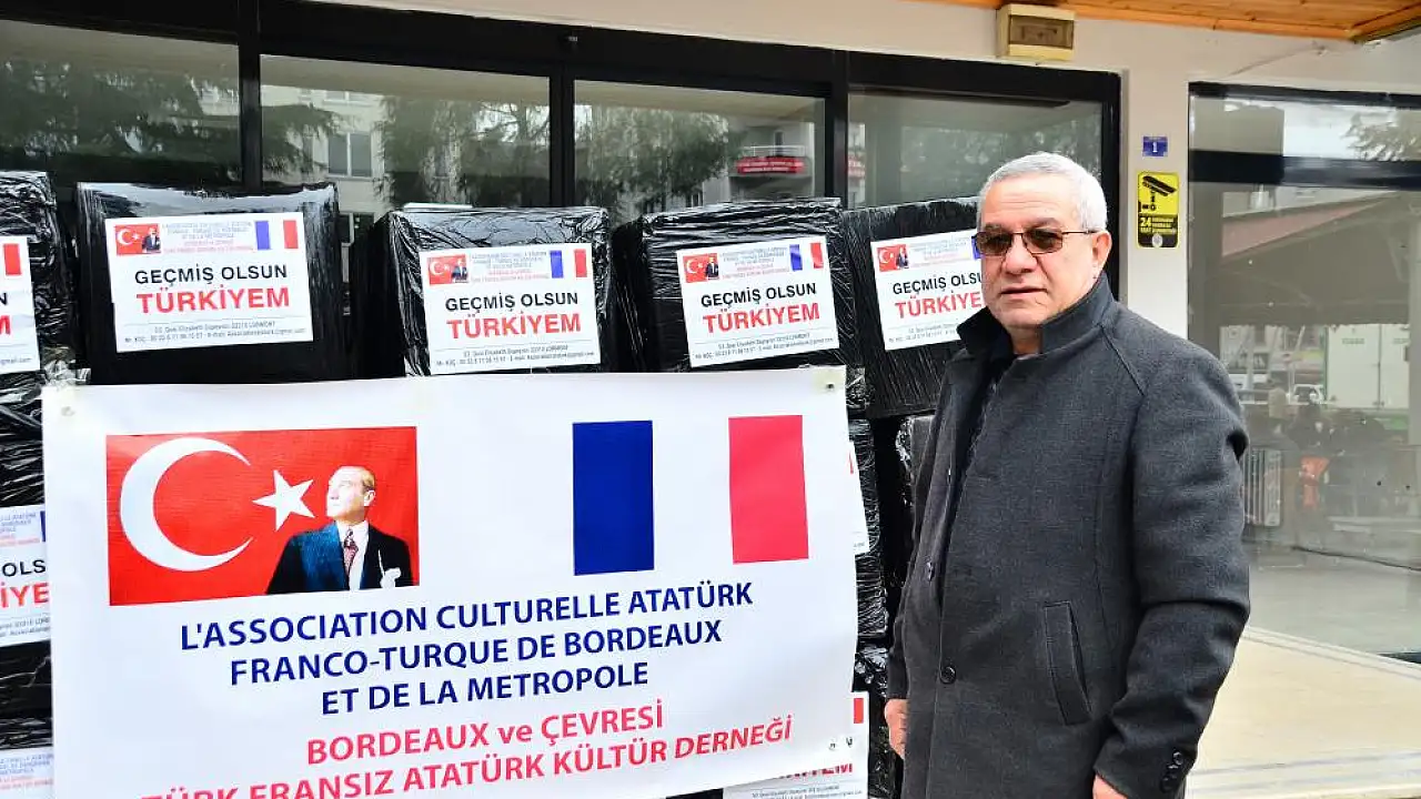 Bordeaux ve Çevresi Türk Fransız Atatürk Kültür Derneği adına toplanan yaklaşık 3 bin avroluk nakdi yardımla alınan bölgede ihtiyaç duyulan uyku tulumları, çadırlar, termal içlikler, termal çizmeler, mont ve yağmurluklar paketlenerek deprem bölgesine gönderildi.