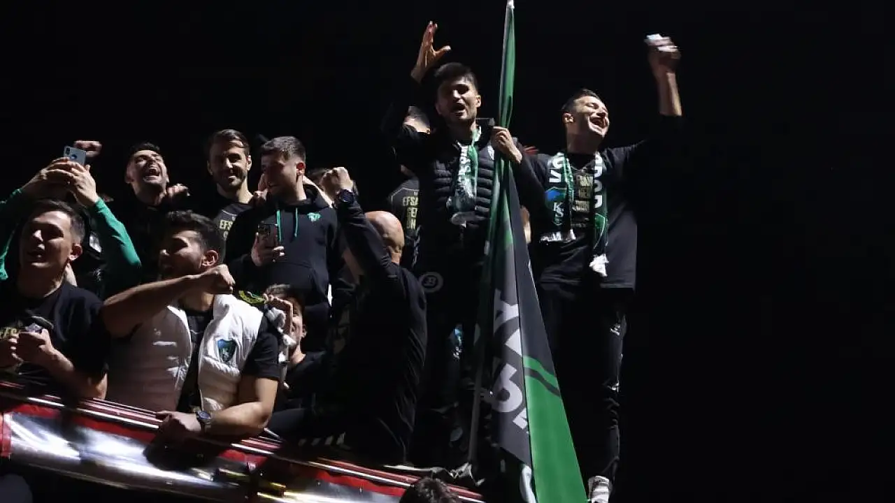 Trendyol Süper Lig'e çıkmayı sezonun bitimine 3 hafta kala garantileyen 1. Lig'in şampiyonu Kocaelispor'un takım kaptanı Gökhan Değirmenci ve forveti Oğulcan Çağlayan şampiyonluğu taraftara armağan etti.
