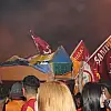 Öte yandan şampiyonluk kutlamalarına Galatasaray taraftarları üzerinde Fenerbahçe bayrağı olan tabut getirdi. Bazı Fenerbahçe taraftarları da kutlamalara katılarak Galatasaraylıların şampiyonluğunu paylaştı.