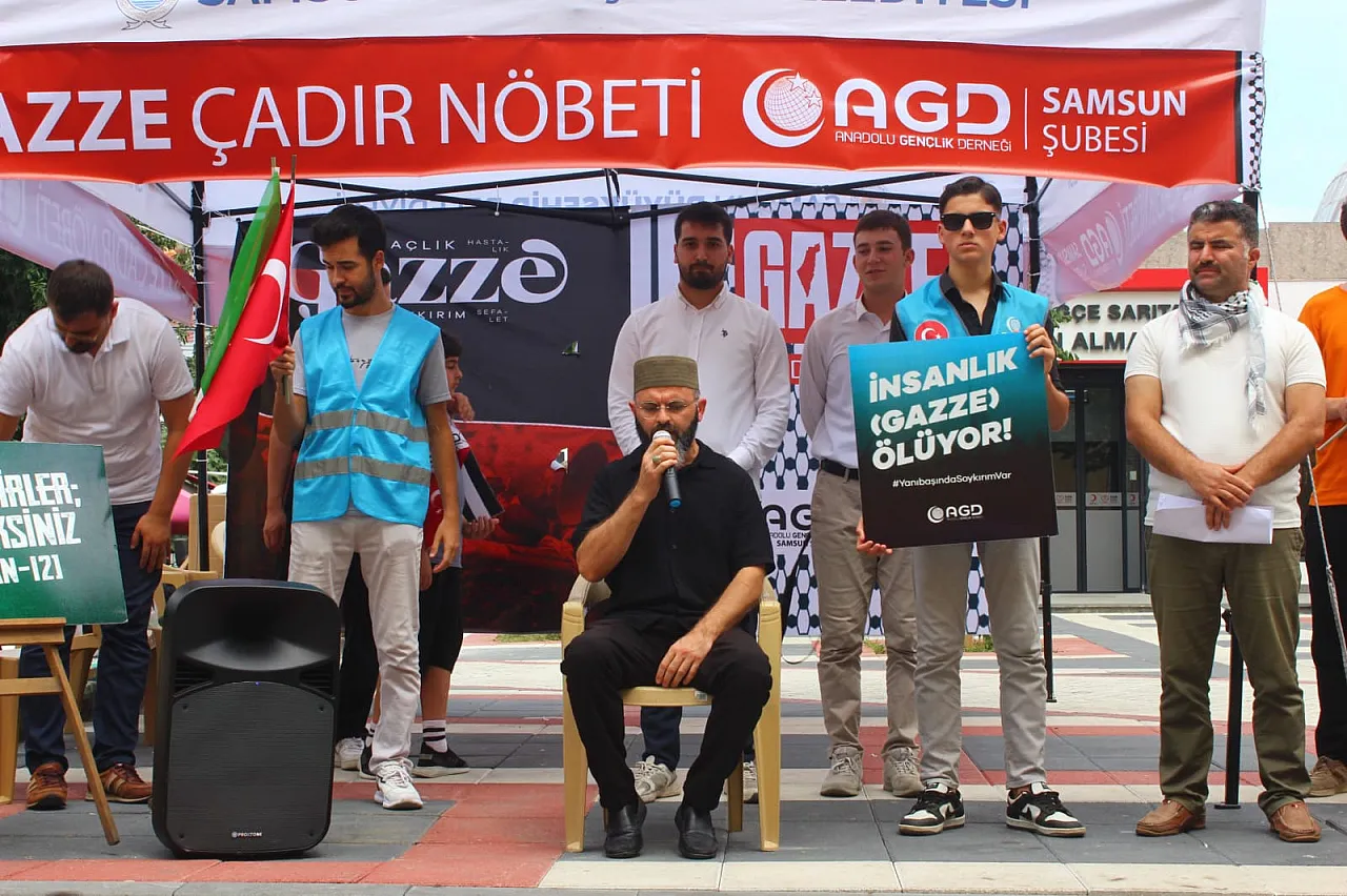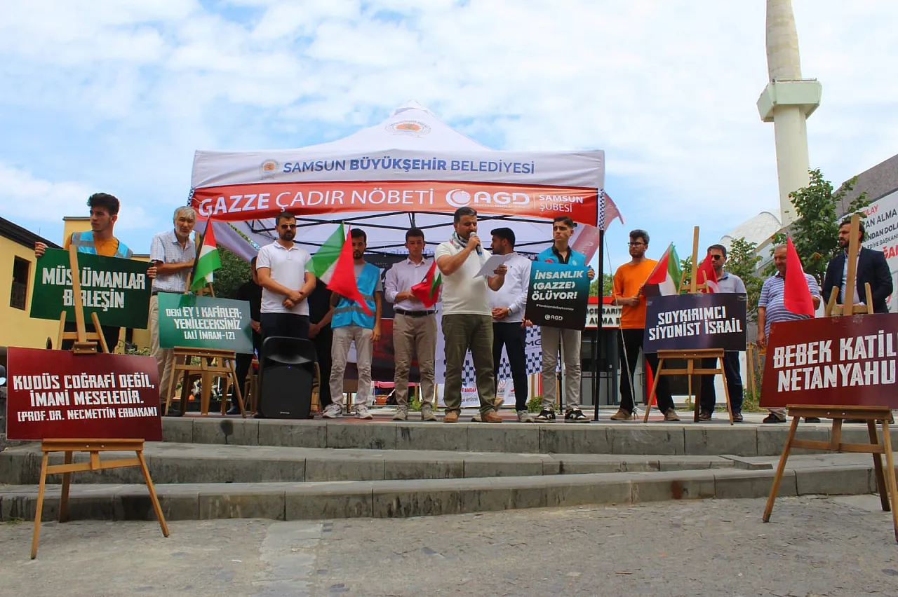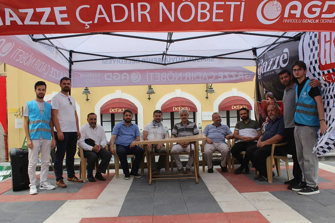 Samsun'da Anadolu Gençlik Derneği (AGD) ve Milli Gençlik Vakfı (MGV) üyeleri, Gazze'ye destek amacıyla çadır nöbeti başlattı.