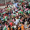 Karşılaşma öncesi yapılan anonslarda da Filistin halkına destek vurgusu yapılırken, stat genelinde duygu dolu anlar yaşandı. Tribünlerde Filistin'i simgeleyen balon da uçuruldu.