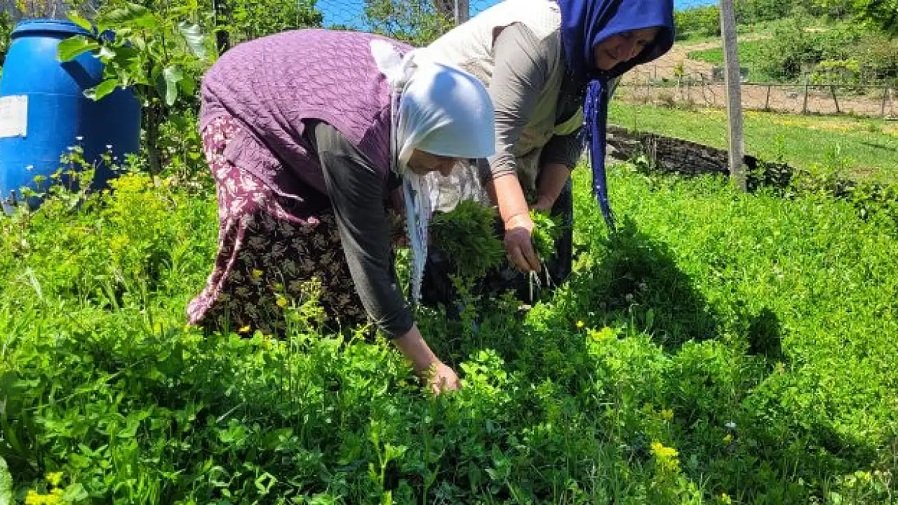 Samsun'da gelin kayınvalide yetiştirdikleri organik naneyi kurutup komşularıyla paylaşıyor