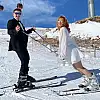 Hayatını Şamil Soykuvvet ile birleştiren Kayserili Kayak Eğitmeni Tuğba Pelit, hayatlarının en mutlu gününde Erciyes'te gelinlik ve damatlıkla pistlerin tozunu aldı.
