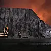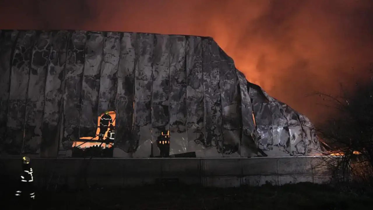 Öte yandan, geceyi aydınlatan alevler dron ile havadan görüntülendi. İtfaiye ekiplerinin yangını söndürme çalışmaları sürüyor.