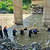 Devlet Su İşleri ekibi de dere yatağı ve su içerisinde çalışma gerçekleştiriyor.