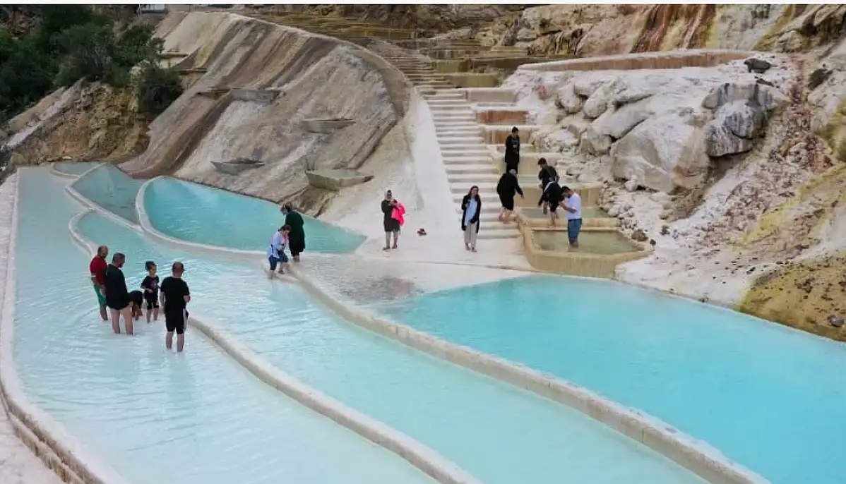 Giresun'un Dereli ilçesi Pınarlar köyünde bulunan, turkuaz renkli göletleri ve beyaz kaya oluşumlarıyla dikkat çeken Göksu travertenleri bu sezon da ziyaretçi akınına uğradı.