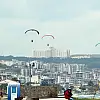 Samsun Büyükşehir Belediyesinin davetiyle Samsun'a gelen paramotorcular, gökyüzünde akrobasi gösterisi yaptılar