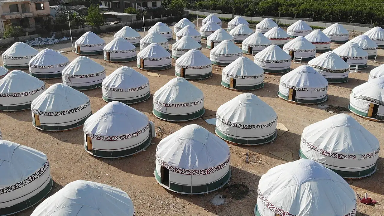 Depremin vurduğu Hatay'da inşa edilen ve görünümleriyle dikkat çeken 174 Kırgız çadırı hazır hale gelmesinin ardından vatandaşların geçici de olsa yeni yuvası olacak.