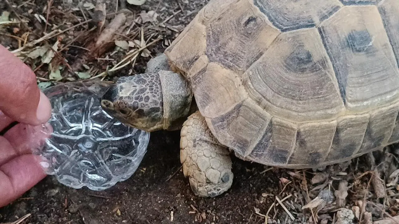 Şehir merkezindeki bir bahçede susuzluktan bitkin düşmüş kaplumbağa bulan bir vatandaş, gözyaşları içerisinde elindeki şişeden kaplumbağaya su içirdi. Uzun süre su içen kaplumbağa daha sonra gözden kayboldu. Duyarlı vatandaştan yüreklere dokunan hareket cep telefonu kamerasına yansıdı.