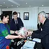 Ahşap Ağaç Oymacılığı Atölyesi’nde üretilen gül motifli ahşap oturma guruplarının kumaşlarının gül kokulu kumaşlarla kaplanabileceğini ifade eden Başkan Günaydın, bununla ilgili olarak çalışma yapılabileceğini dile getirdi. Hindistan Büyükelçisi Susmita Gongulee Thomas’ta Belediye Başkanı Yusuf Ziya Günaydın’a ülkesine has çayların bulunduğu bir kutu hediye etti.