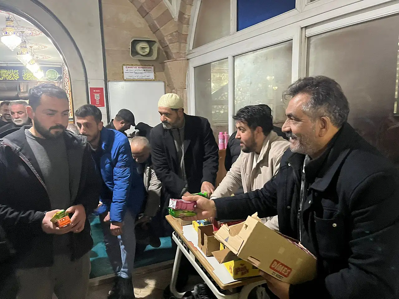Mevlit programının ardından cami çıkışında vatandaşlara çeşitli ikramlarda bulunuldu.