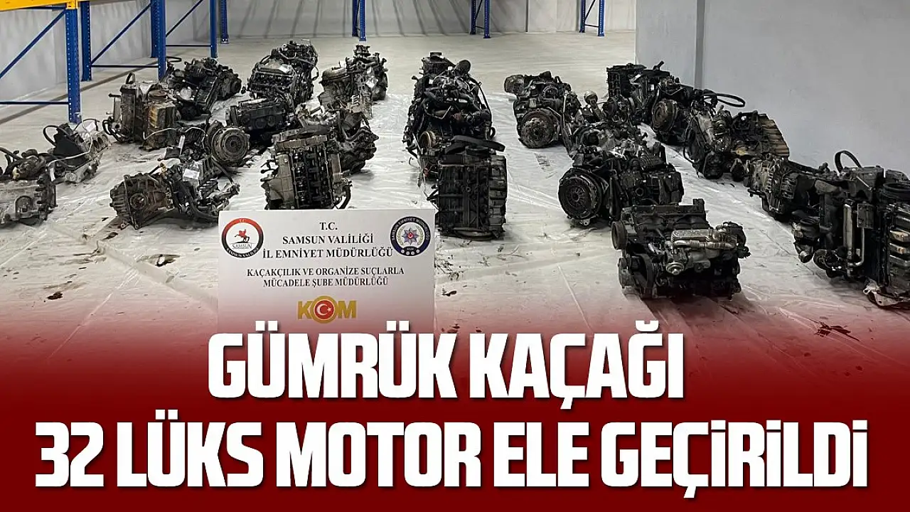 Tekkeköy ilçesi Şabanoğlu Mahallesi'nde oto yedek parçası satan bir iş yerinde yapılan arama ve Gelir İdaresi Başkanlığı görevlileri ile birlikte gerçekleştirilen evrak kontrollerinde, piyasa değeri yaklaşık 3 milyon lira olan 32 gümrük kaçağı lüks araç motoru ele geçirildi.