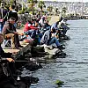 Samsun sahilinde emekliler her gün balık tutarken, gençler ise hafta sonlarını balık tutarak geçiriyorlar.