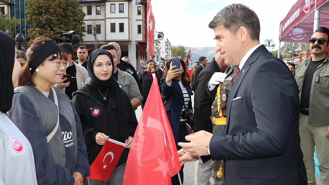 Amasya'ya turist olarak gelen Güney Koreli 36 yaşındaki Hong Youngsook, Cumhuriyet Bayramı kutlamalarına katıldı.