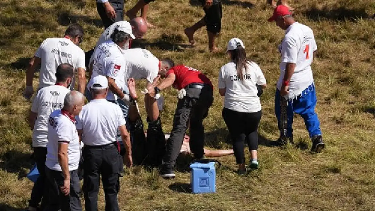 663. Tarihi Kırkpınar Güreşleri'nde sıcak havaya dayanamayan pehlivan, güreşirken bayıldı.