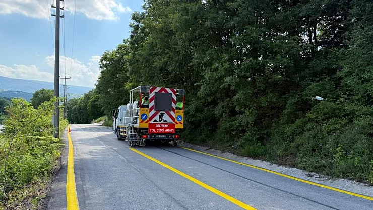 Kocaeli'de sürücülerin güvenli ulaşımı için kırsal bölgelerde 50 bin metrekare yol çizgi çalışması gerçekleştirildi.