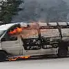 Kastamonu'da bir sürücü, polis ekibinin işlem yapmak istediği haciz yakalamalı panelvan aracını ateşe verdi.