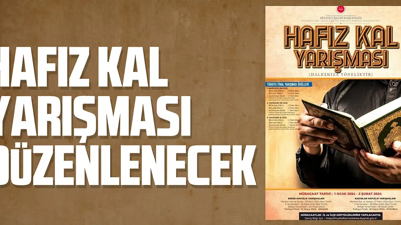 HAFIZ KAL YARIŞMASI DÜZENLENECEK