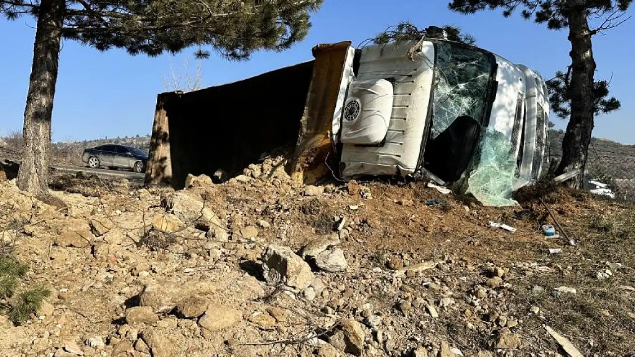 Kastamonu'da buzlu yolda devrilen hafriyat kamyonunun sürücüsü yaralandı