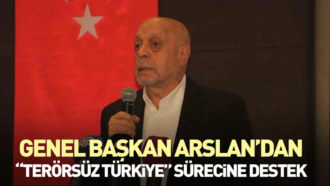 HAK-İŞ ve HİZMET-İŞ Genel Başkanı Mahmut Arslan, 'Terörsüz Türkiye' projesine destek verdiklerini belirterek, mevcut sürecin geçmiş dönemlere kıyasla daha güçlü ve avantajlı bir zemine sahip olduğunu söyledi. Arslan, Milliyetçi Hareket Partisi'nin süreçte üstlendiği rolün ise dikkat çekici ve değerli olduğunu ifade etti.