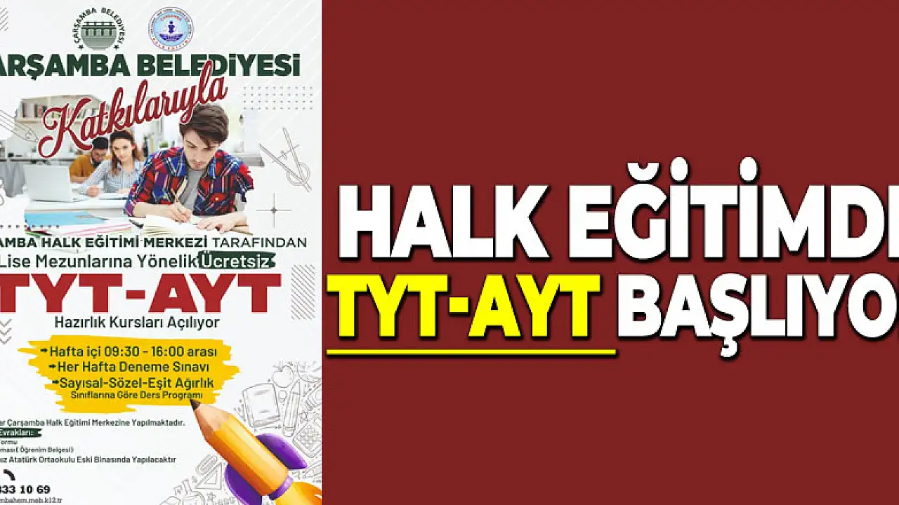 Çarşamba İlçesi Halk Eğitim Merkezi tarafından üniversite sınavına hazırlanacak olan öğrencilere ücretsiz kurslar başlıyor